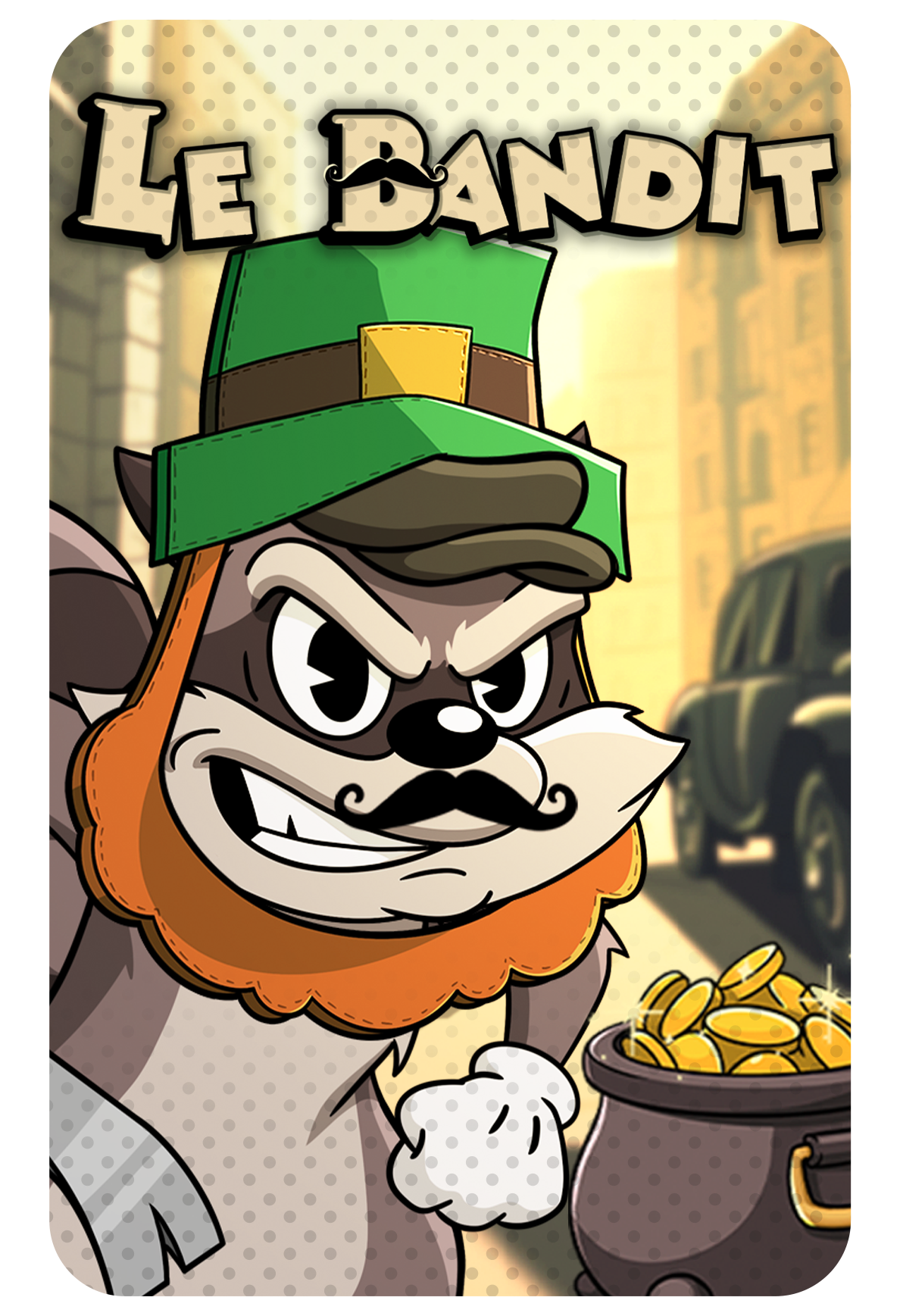 The main character of this game, little ‘Le Bandit,’ is represented by a charming raccoon, himself made in a traditional cartoon style with white handwear covers and a stylish hat. Every so often, he needs to damage himself, and sometimes a hair from his mustache falls out, and afterwards he looks rather embarrassed when he has to place it back on his face.